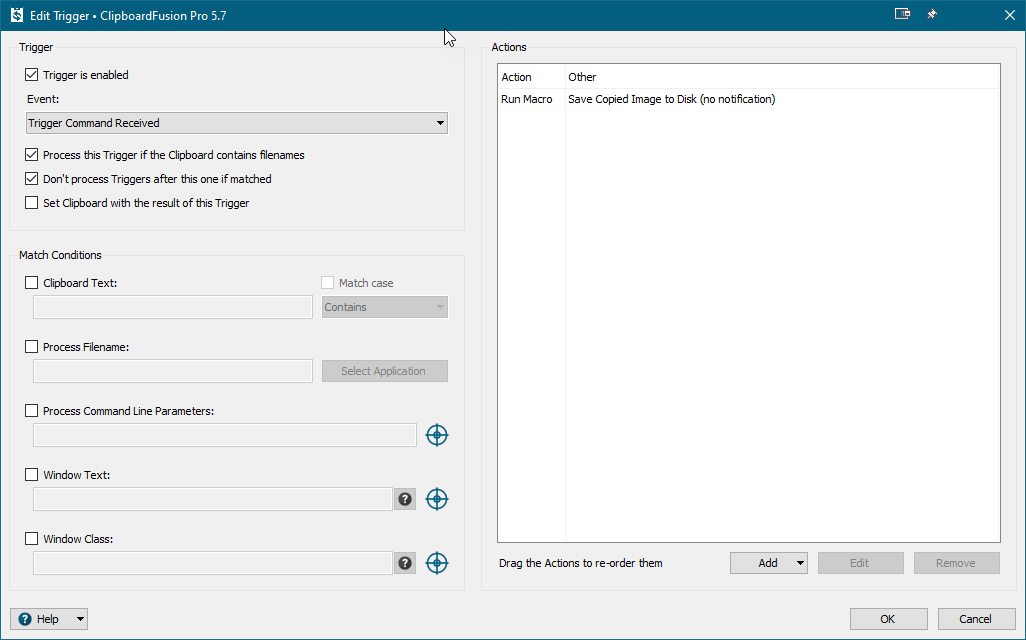 Hi, thanks for fixing this macro for me. Can you help me figure out how to set the trigger? For some reason, when this macro is enabled, I cannot copy and paste text! Do I need to have a trigger set up for this, or is there a way to run it all the time? I actually only care about it running when I use the Win 10 printscreen screen/window capture program.