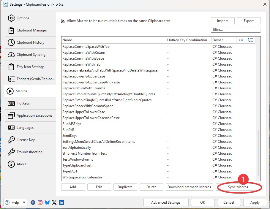 I didn't click on "sync macros". I don't remember an instruction to do so. I have tried now, but it did not do anything.