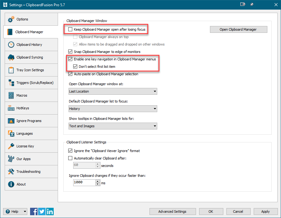 Also, even with the keep open setting, I still need to double and now sometimes triple hit the hotkey to get it to go in front of the window I'm working in, but setting it to always be on top is annoying since it doesn't automatically go away after I select something to paste.