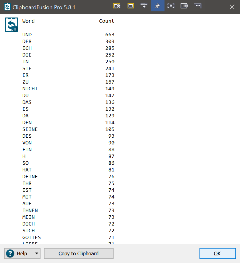 Thank you for your reply. I saw this Macro but it's not what I am looking for. It counts the word but it does not say which is the most used word in the text.