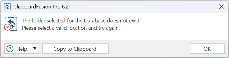1. Create a folder on the root of the C drive and set that to the database location in the ClipboardFusion Settings > Clipboard History Tab
